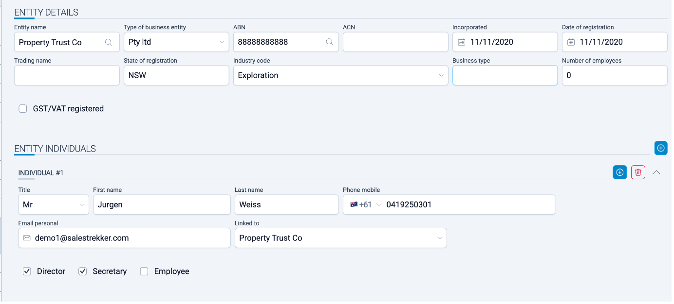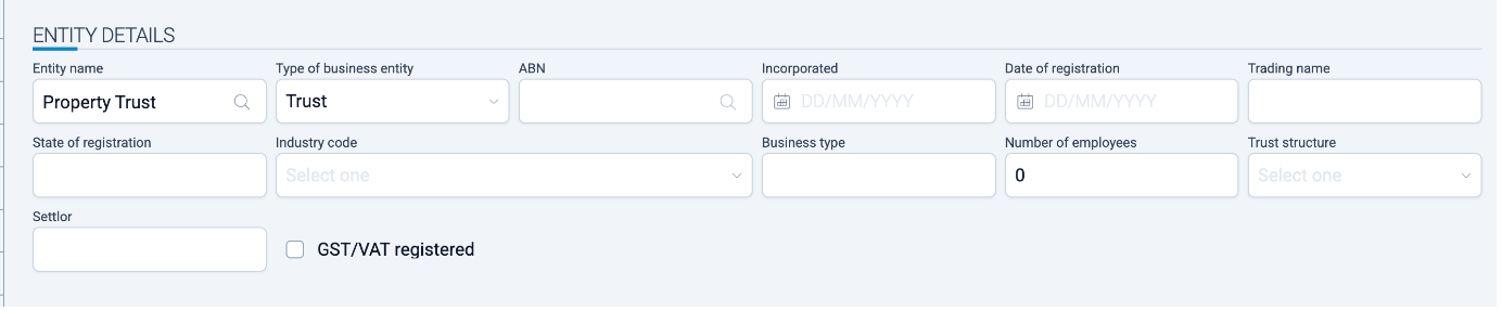 Trustee details, company individuals and beneficiaries do not need to be set up in this screen.