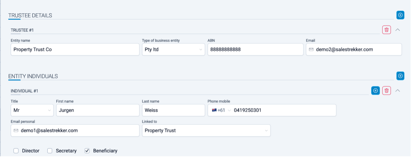 Add existing Trustee (one added in Add New Deal screen) and add trust beneficiaries: